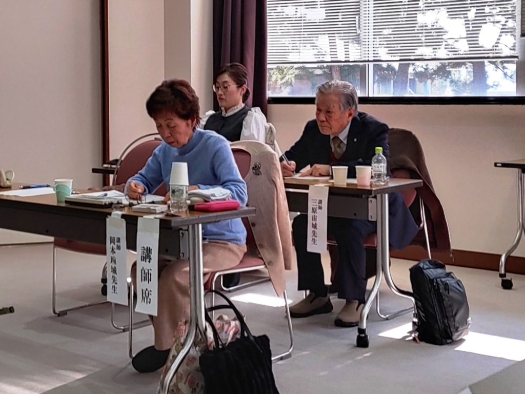 講師岡本琬城先生の講習会と、参加者全員が課題の吟題を吟じ、それぞれの吟に対して岡本先生が詳細について指導された。時間に余裕があり、それぞれ有意義な時間となった。今後も同様講義の希望が多くあった。